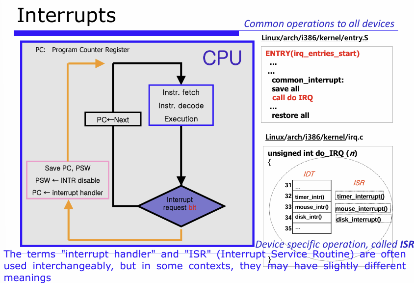 인터럽트와 예외 모두 리눅스에서 같은 방식으로 작동한다.
