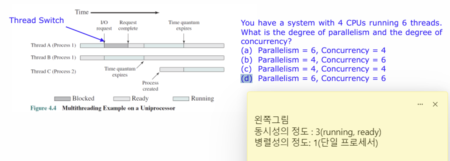 동시성의 정도 : 진행중이거나(running, ready )동시에 진행 중일 수 있는 쓰레드 수