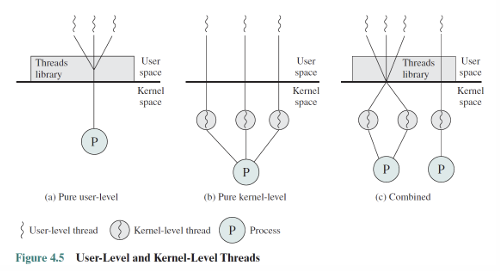 유저가 관리. 커널은 스레드의 존재를 모르고 하나의 프로세스로 인식한다.