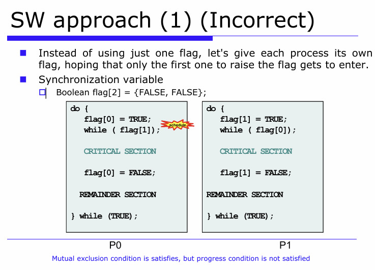-2) SW approach (1) - 상호배제 만족, Progress 만족 못함.